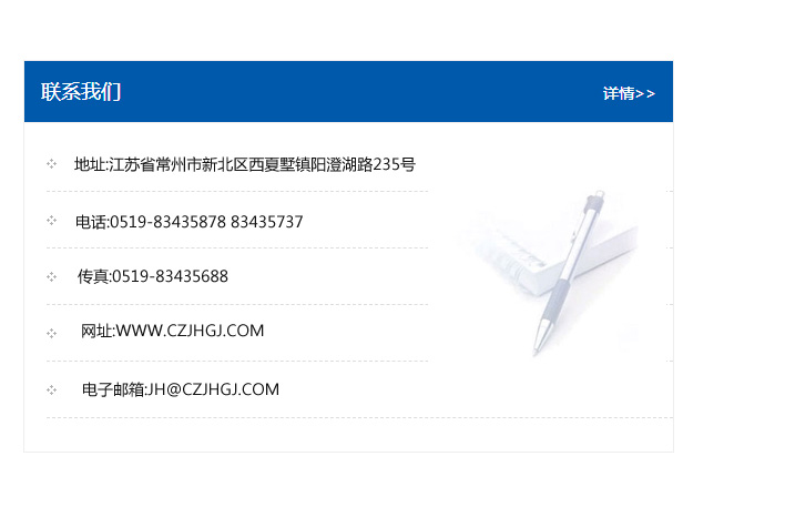 傳真:0519-83435688    郵編:213135    網址:WWW.czjhgj_com.jkr88.com    電子郵箱:JH@czjhgj_com.jkr88.com